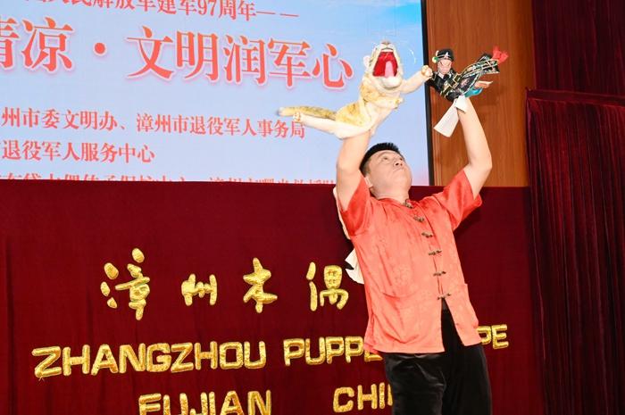 漳州市文明实践志愿服务先锋队——漳州市“小木偶 大世界”非遗文化文艺志愿服务队进军营表演 (三)服务群众更加精准 各先锋队深入文明实践中心(所、站),围绕义剪义诊、看护照料、维修水电、缝补衣物、清沟扫地等与群众日常生活息息相关的民生细节小事,广泛开展文明实践精准服务活动5600余场次,服务群众10万余人次,其中服务老年群体义剪1万余人次、义诊3000余人次,法律咨询服务1千余人次,播放露天电影200余部,缝补衣物2000余件、维修家电800余件。