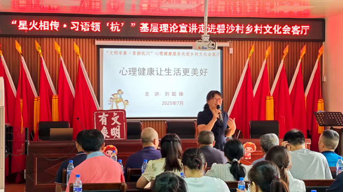 “星火相传 习语领‘杭’”基层理论宣讲走进白砂镇碧沙村文化会客厅开展文明实践理论宣讲 一、主要做法 (一)聚焦“讲深”,以专业化队伍推动宣讲“活起来” 打造“1+6+N”宣讲队伍,建立1支县级层面的“星火讲师团”、组建6支各具特色的专业宣讲队、成立N支基层宣讲小分队,从“点、线、面”完善队伍矩阵,通过以点带线、以线带面的方式,构建起“三大原则”“四大服务”“五大目标”“六支分队”的3456工作机制,形成完善的宣讲工作体系,推动习近平新时代中国特色社会主义思想走进千家万户。 (二)聚焦“讲实”,以丰富内容推动宣讲“亮起来” 坚持以群众需求为导向,归纳整理新思想新精神、服务经济发展、文化党史研究、社会法制建设、生态文明建设、乡村振兴发展、农村实用技术、基层组织治理等八大类“课题菜单”,构建起领导干部讲政策、专家学者讲理论、支部书记讲社情、文化能人讲故事的宣讲格局。“星火相传·习语领‘杭’”基层理论宣讲骨干120人、宣讲志愿者150余人,深入全县乡村、企业、社区、学校,开展“送课下乡”“送教入校”“送学进企”等宣讲活动3600余场次,线上线下受众超过150万人次,为基层干部群众提供丰富的营养“大餐”和文化“点心”。