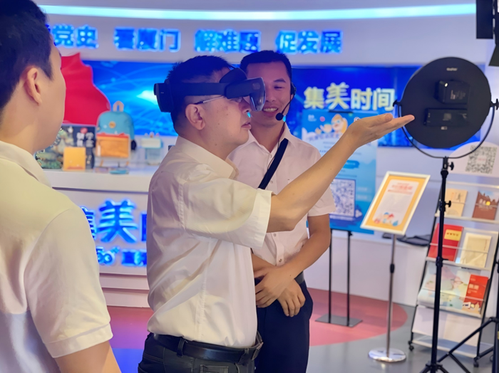 嘉庚精神云上空间拓展:AR场景还原 (二)激活云端生态,数字化传播触“屏”亦触“情” 实践中心充分运用VR体验、AI导览、AR场景还原等数字技术,打造“云上嘉庚”6个文明实践空间;融合“人文集美”“集美旅游”等12个线上平台,构建“全媒联动、全域传播”的嘉庚精神数字传播矩阵。 创新“新风秀”品牌,开展全区性短视频创作培训和作品征集活动,鼓励市民、志愿者用镜头记录文明实践瞬间、讲述嘉庚故事;联合海西晨报、东南网、厦门晚报等权威媒体,制作并传播实践带路线视频、特色服务报道,形成线上线下共振效应。