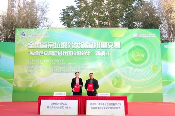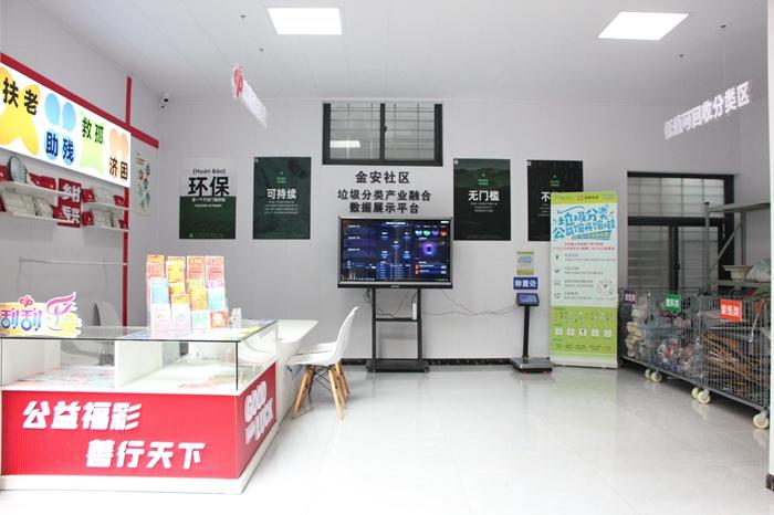 厦门市湖里区金山街道金安社区新时代文明实践站锚定“深入推进移风易俗”核心任务,针对清洁楼建在小区内的卫生问题、旧纸皮衣物堆积在楼道内的安全隐患、没有专项资金救急困难群体等三个痛点问题,通过重构清洁楼近40㎡空间,打造垃圾分类公益馆,线上创设碳账户、线下数据平台实时展示碳行为,形成一个集教育体验、数字展示、扶贫济困等多功能于一体的实践阵地,引导居民践行绿色生活理念,持续营造文明和谐社区氛围。 全国首例垃圾分类碳减排量交易项目落地厦门市湖里区金安社区 一、主要做法 (一)化邻避为邻喜,清洁楼变身环保客厅 实践站牵头将原清洁楼改造为垃圾分类公益馆,投入27.9万元购买厨余垃圾就地处理设备和可回收物压缩设备并引入环保企业运营服务。场地划分为厨余垃圾就地处理区、低值可回收分类区、扶贫济困兑换区和数据展示平台。通过空间和服务的升级改造,彻底解决了原清洁楼因异味、噪音导致的邻避问题,使其成为开放友好、富含教育意义的小区环保客厅。