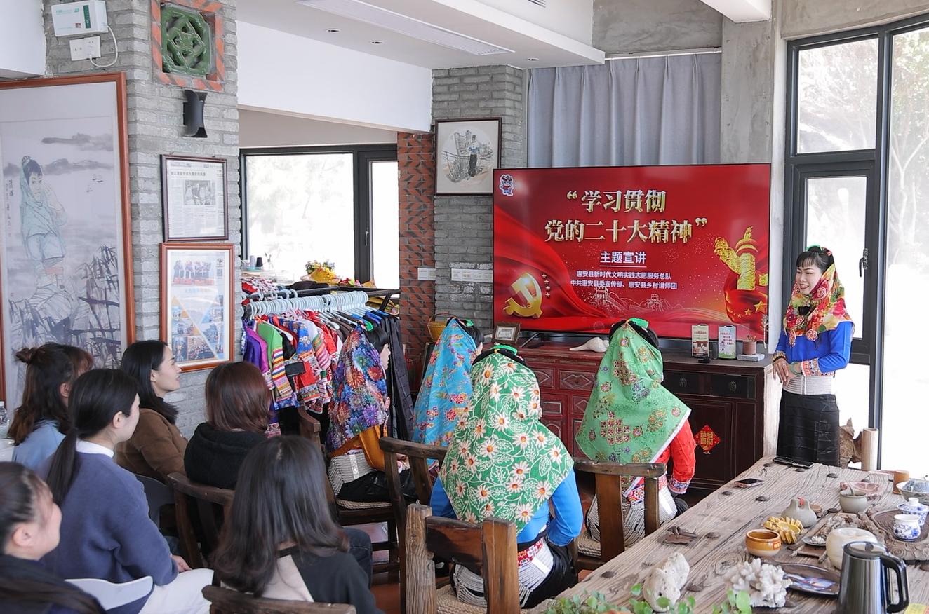 学习贯彻党的二十大精神主题宣讲走进惠女风情园 一、主要做法 (一)机制“夯土”,让宣讲落地生根 坚持牵头抓总、高位推进,联合县直相关部门印发《关于新时代文明实践中心理论宣讲工作安排的通知》《开展理论“周周讲”系列活动的通知》等文件,深化拓展“1+1+N”理论宣讲工作机制(新时代文明实践中心每周至少开展一场主题宣讲活动;各个所、站每周联动开展至少一场新式宣讲活动;宣讲小分队每月进村入户开展N场特色宣讲活动),从人员匹配、活动统筹、宣传推广等流程上实现机制闭环。