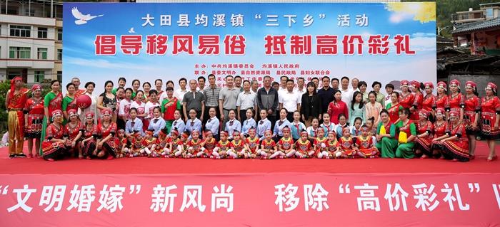 2023年4月22日,大田县均溪镇开展“倡导移风易俗、抵制高价彩礼”三下乡活动 (三)治理效能全面提升,长效机制基本建立 探索出一条党委领导、政府主导、社会协同、群众自治、法治保障相结合的移风易俗新路径,从被动应对彩礼纠纷,转变为主动提供前置保障和系统性服务,实现了“治标”与“治本”的有机统一。