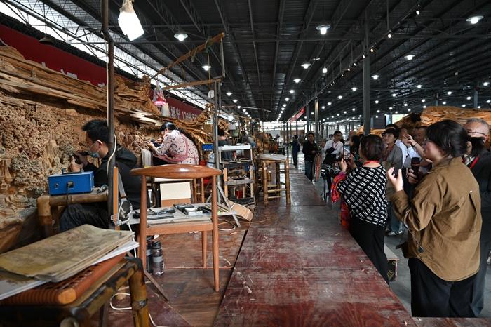 莆田市美术馆木雕创作 一、主要做法 (一)非遗+人才:培育非遗代表性传承人才梯队 聚焦“莆田味道 非遗传承”,与复茂食品有限公司协作,以“传承技艺、培育新人”为核心,打造“选拔-培养-输出”人才孵化模式。构建现代师徒制。以国家级技能大师郭继光、全国技术能手郭旭等非遗代表性传承人为核心,组建高水平“现代师徒制”文明实践团队,依托全国大中专院校及中焙烤行业资源,联合选拔优秀学员,创新实施“1+2”与“2+2”分段培养模式,培养“善经营、懂技术、会管理、能训练”的复合型高技能人才。创新拓展非遗传播路径。开展“非遗大师进校园”系列活动。团队走进福建技术师范学院、莆田科技职业技术学校、北大附中莆田学院等院校,举办“郭继光非遗技艺讲座与实践展示”。打造非遗研习基地。打造集文化展示、技艺传习、亲子体验于一体的“复茂非遗研习基地”,已开展非遗主题活动22期,参与亲子超1500人次。 (二)非遗+宣讲:构建沉浸式文化传播矩阵 依托莆田市美术馆专业阵地,将非遗技艺与文化宣讲深度融合。馆内设立国家级工艺美术大师郑春辉的大型木雕创作基地,以120米单面木雕《京杭大运河》和56米双面木雕《百里兰溪图》为核心载体,构建“可观、可听、可悟”的宣讲场景。组建非遗文明实践志愿队,在创作基地开展常态化讲解服务,让群众在领略木雕技艺魅力的同时,深度感知文化根脉。