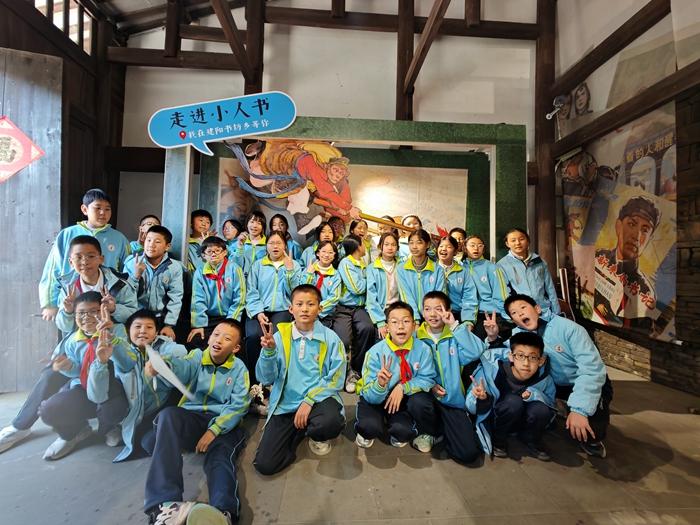 2024年11月28日,建阳区旭辉小学的孩子们在小人书博物馆开展研学活动 (二)以教为桥通达理论 小人书博物馆充分发挥教育功能,成为乡村文化振兴的重要阵地。与全乡中小学合作开发“建本文化校本课程”,定期开展“博物馆里的建本课”“我是小小传承人”等研学活动,让孩子们在刻印、装帧实践中了解家乡文化。推出“流动的小人书”巡回展览,走进各村文化礼堂、农家书屋,举办“爷爷奶奶的建本故事会”“邻里刻版体验日”等群众文化活动,每月定期举办的“理论宣讲”,邀请学校教师、红色讲解员、党员代表等,用拉家常般的生动语言传授建本文化、传承红色故事、解读政策文件。对学生群体侧重文化启蒙,让孩子们在鲜活讲述中了解家乡历史;对村民用通俗表达解读惠民政策、明晰发展方向,年参与量超1200人次,成为连接文化根脉与政策落地的“直通车”。