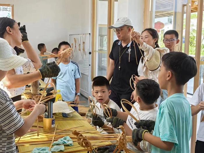 学生们在武平县中山镇阳民村研学体验竹编艺术 (二)文化赋能产业:挖掘特色内涵,打造IP符号 阳民村深入挖掘“竹文化”,将竹编技艺、竹诗典故融入产品设计,开发竹制文创产品,并在“龙河竹漂”项目中加入竹文化解说环节,让游客在体验漂流的同时感受竹文化魅力;上镇村(含五里村)围绕“果文化”,举办“柑橘采摘节”,设置柑橘品鉴、果雕展示、果园摄影等文化活动,邀请村民讲述种果故事,制作“果香记忆”短视频在本地平台传播;黄坊村依托“农耕文化”,打造传统农具展示馆,开设农耕体验课程,让游客参与耕地、播种、收割等农事活动,实现“产业有文化、文化促产业”的良性循环。 (三)培育新农人群体:创新人才引育,激活内生动力 阳民村创新打造“新农人”部落,通过“政策扶持+资源对接”吸引人才回流。一方面,为返乡青年提供闲置农房改造补贴、创业贷款贴息等政策支持;另一方面,搭建“新农人”实训基地,邀请电商专家、农业技术员开展直播带货、生态种植等技能培训。
