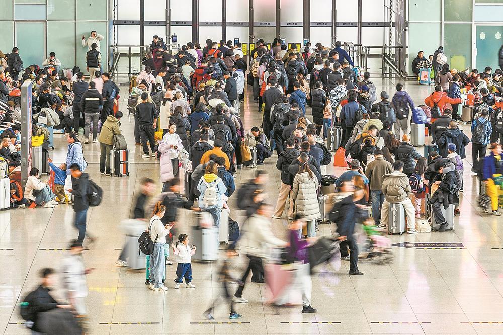 10日,春运期间的福州火车站,旅客步履匆匆赶乘列车。陈天博 摄