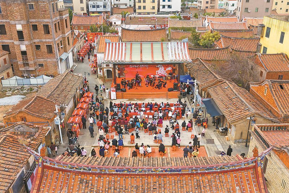 腊月的海风拂过大嶝岛田墘社区的红砖厝聚落,欢声笑语驱散了海岛冬日的寒意。2月1日,一场名为“墘来福到·斗阵迎新”的新春庆典活动在这里举行(上图)。