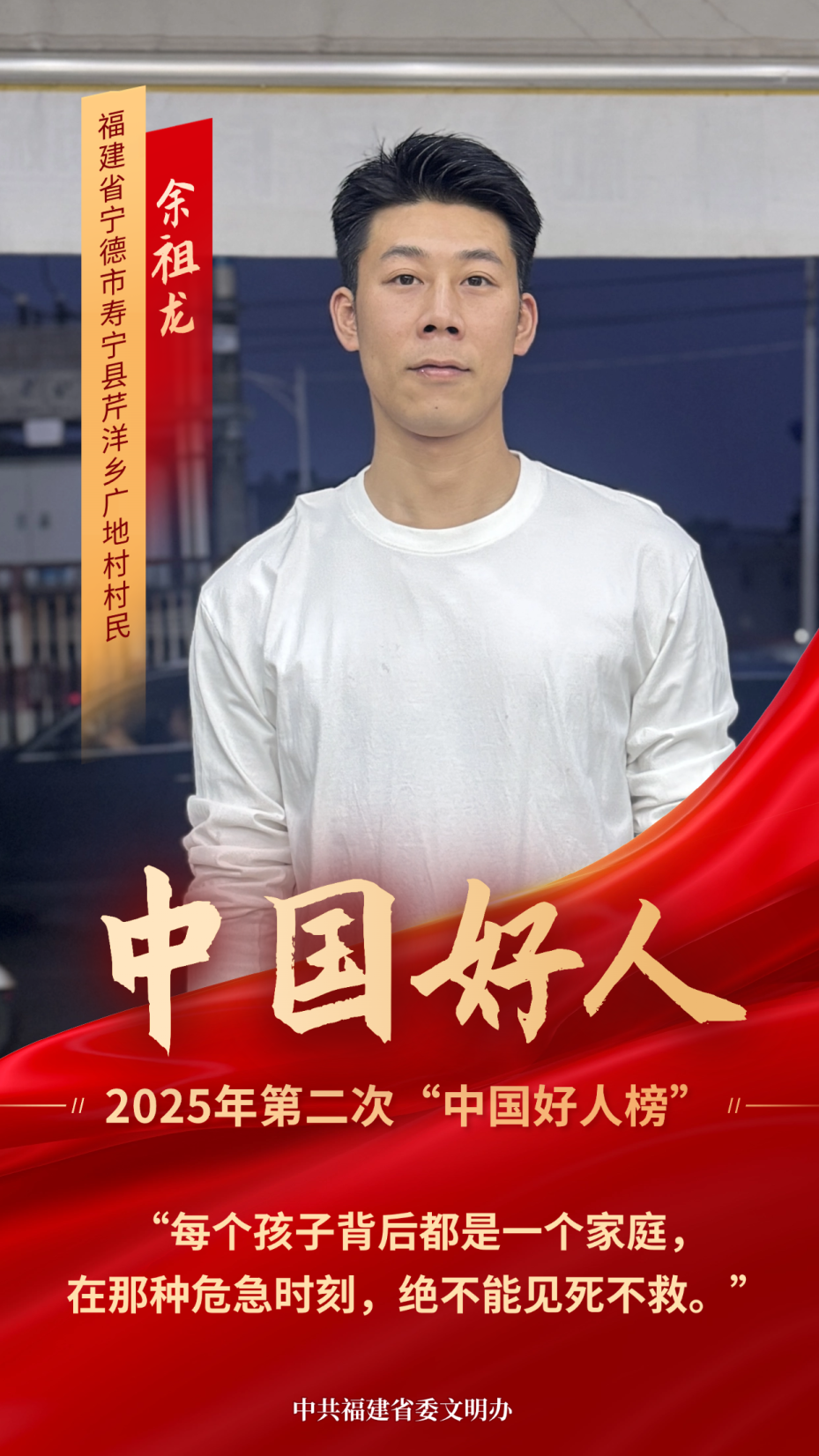 2024年10月14日晚,余祖龙在散步时,听到有人呼喊,得知有两名少年不慎落入深水湖中。当时,余祖龙刚做完阑尾炎手术,伤口还未拆线,但他没有丝毫犹豫,毅然跳入冰冷刺骨的湖水中展开救援。救起第一名少年后,余祖龙已体力不支。然而,他咬紧牙关,转身又救起了第二名落水少年。[详细]