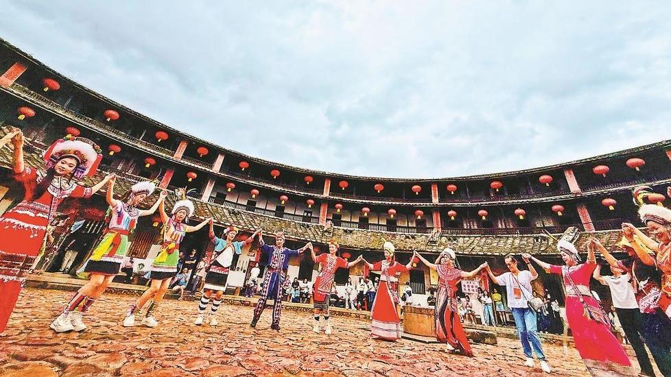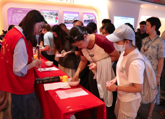 博饼时,桌上放置一个瓷碗,每人轮流抓取6个骰子,掷入碗中,发出叮叮当当的脆响,看骰子的点数得饼。博饼过程充满欢声笑语,其乐融融的感觉很是温馨。[详细]